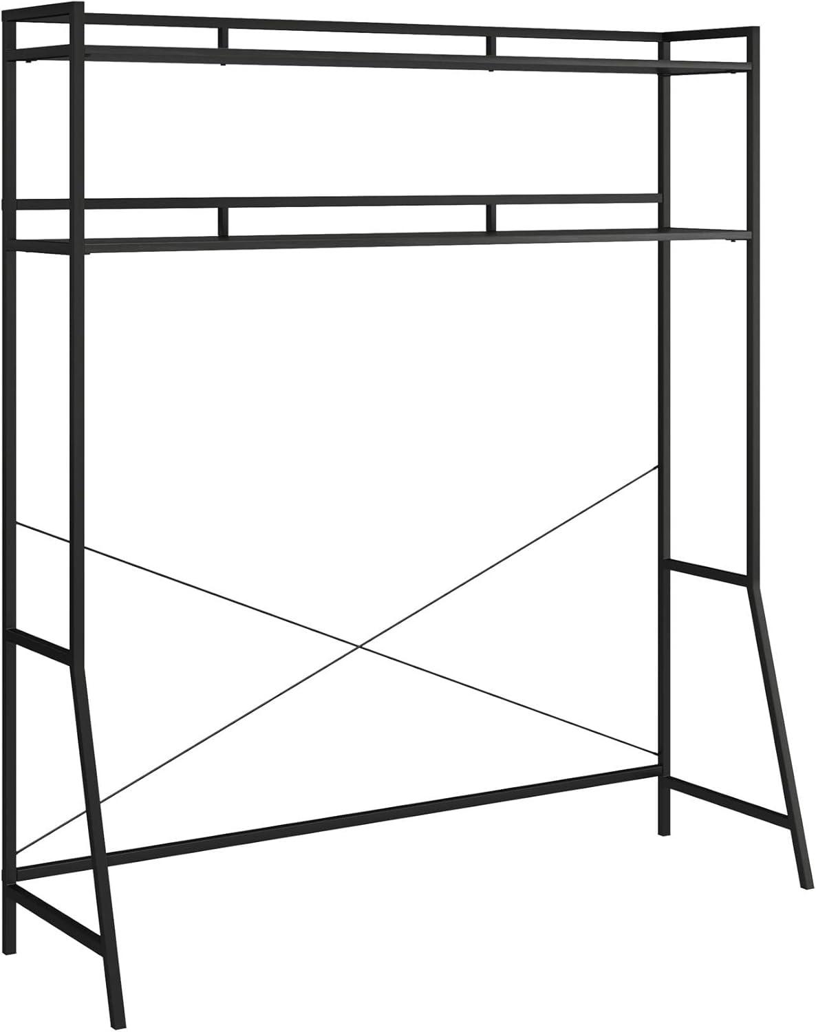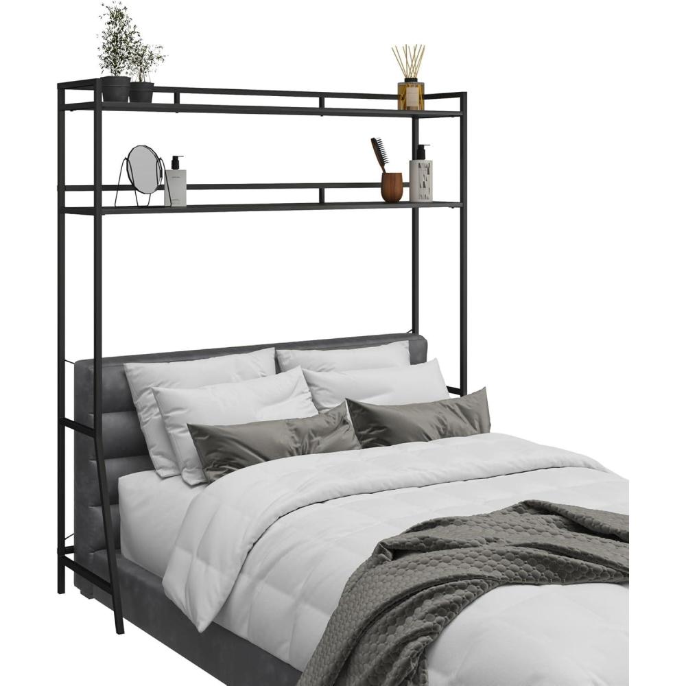 Nowhere to go but up! Running out of space can be a daunting dilemma. Get ahead of the game with Beverly Over-The-Bed Storage for Full and Full XL Beds by Novogratz. With 2 shelves spanning the width of your bed, you now have that extra space you’ve been looking for to beautify your room. Display your favorite photos or a unique art piece on the top shelf, and keep books, laptops, tablets, pens, or bins all within reach on the lower shelf. This is a must have for back to college! Perfect for the dorm room, apartment, condo, or anywhere space is limited. Made from sturdy powder coated metal and durable engineered wood, the shelf is easy to assemble and ships flat to your door. Fits most full and full XL beds. Assembled measurements: 58.66” W x 64.88” H x 18.5” D. Assembled weight: 37.42 lbs. Ships flat in one box. Assembly is required. Two adults are recommended to assemble.