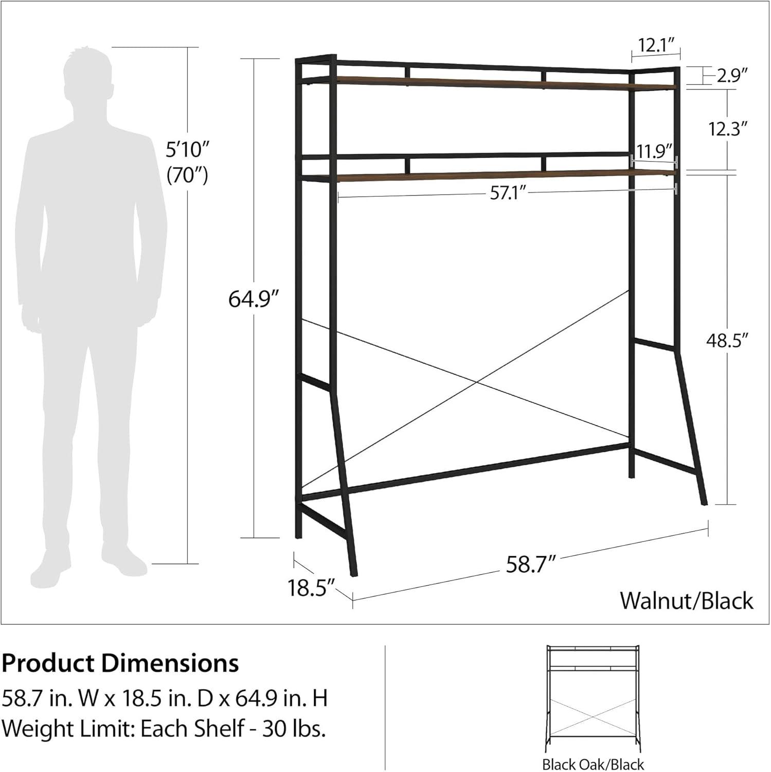 Ameriwood Home Novogratz Beverly Over-The-Bed Storage for Full and Full XL Beds, Black Oak with Black Metal