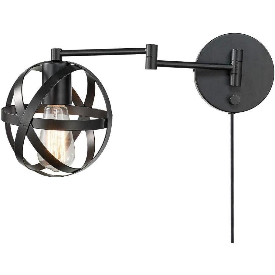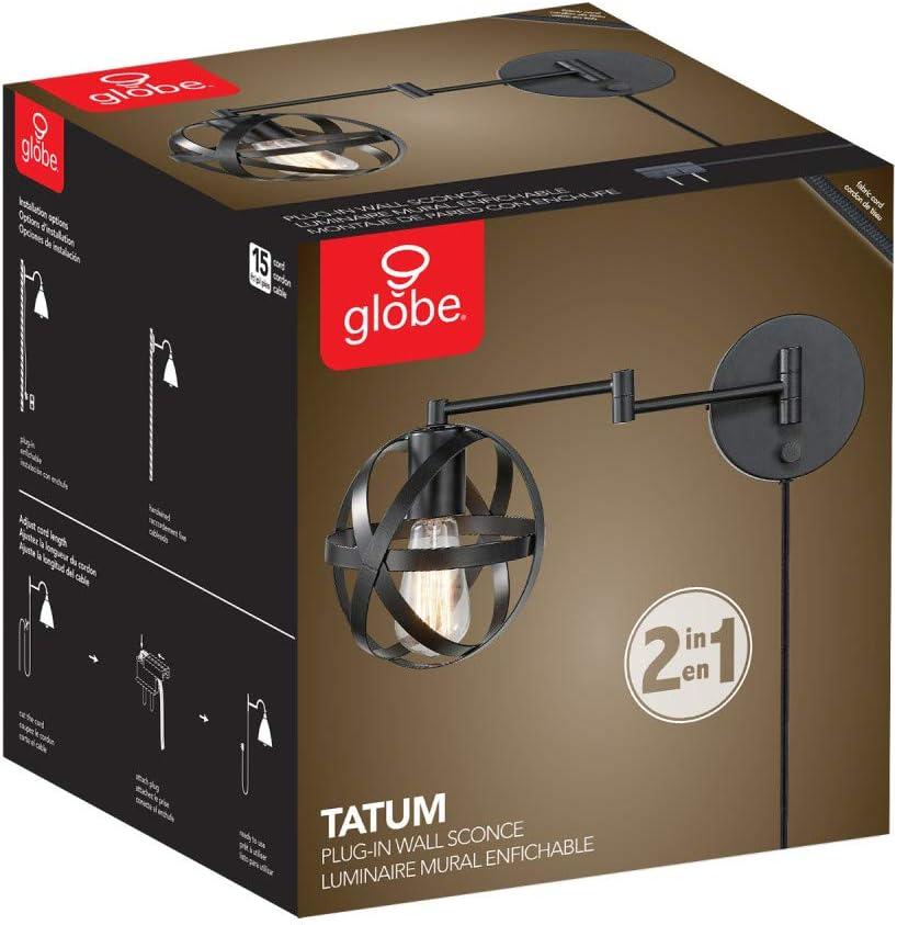 GLOBE Electric 51374 Cleo 1-Light Plug-in or Hardwire Wall Sconce, Matte, Antique Brass Accents, Black Cloth Cord, 14.44(Dark Bronze Tatum)