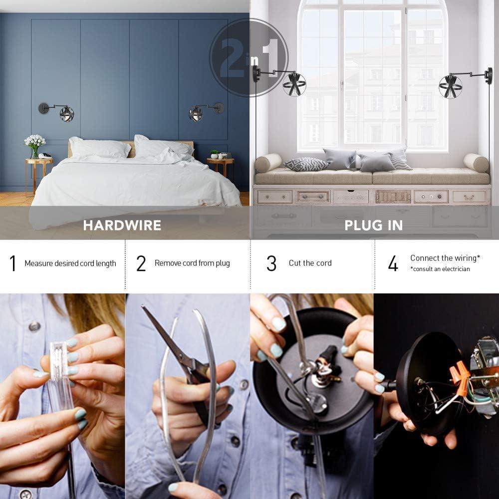 PLUG-IN OR HARDWIRE CAPABILITY: the innovative 2-in-1 design allows you to install your wall light as a plug-in so you can place it anywhere in your home or use the hardwire option to create a sleek cordless look