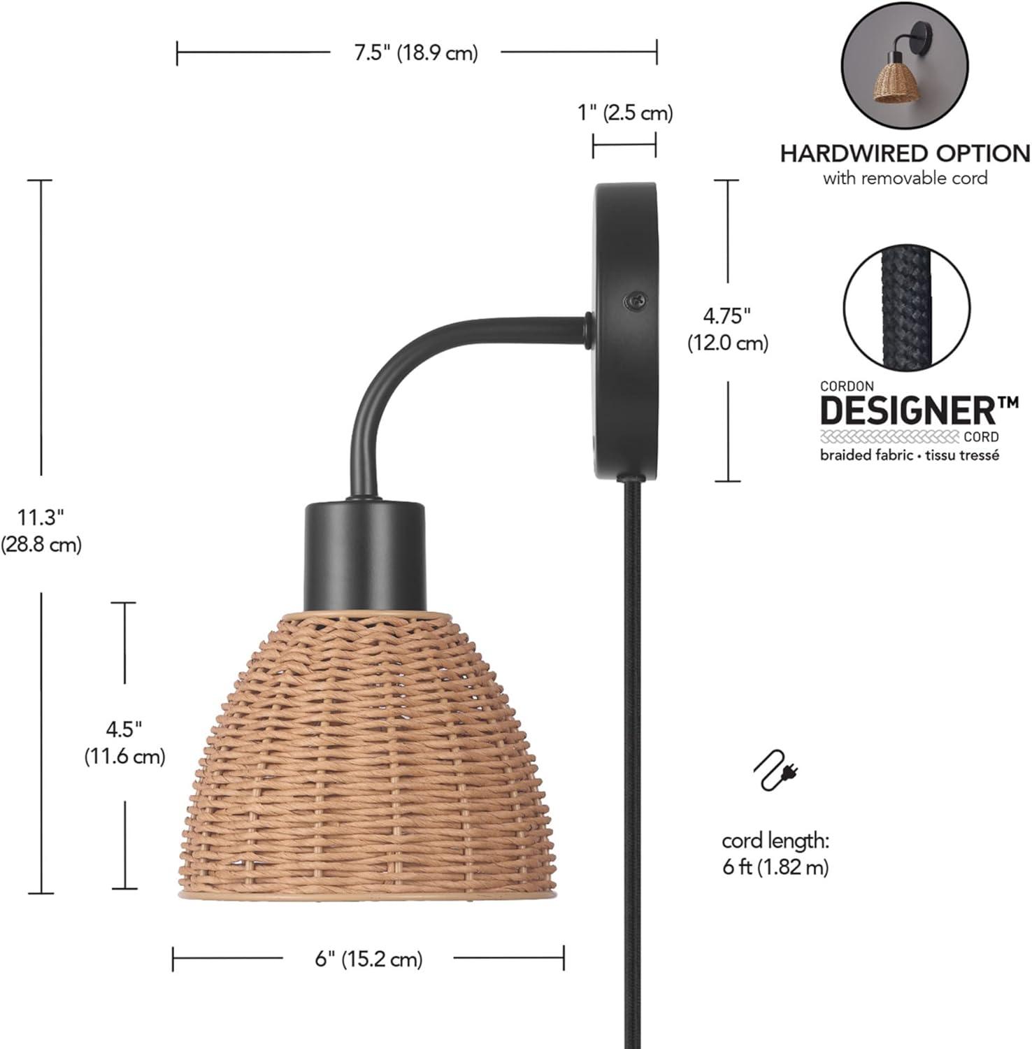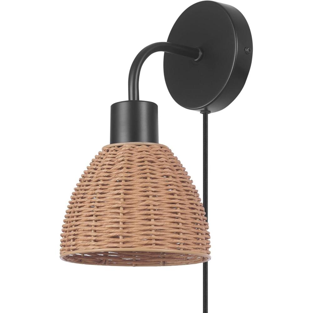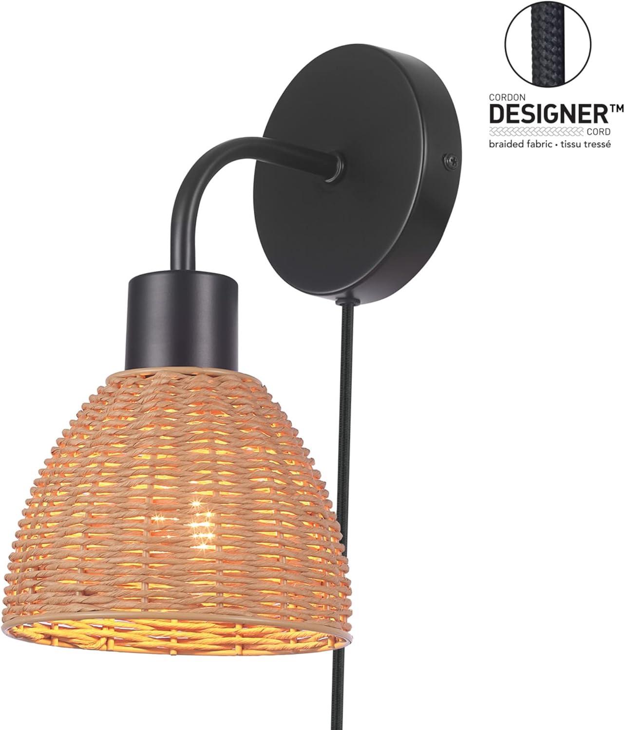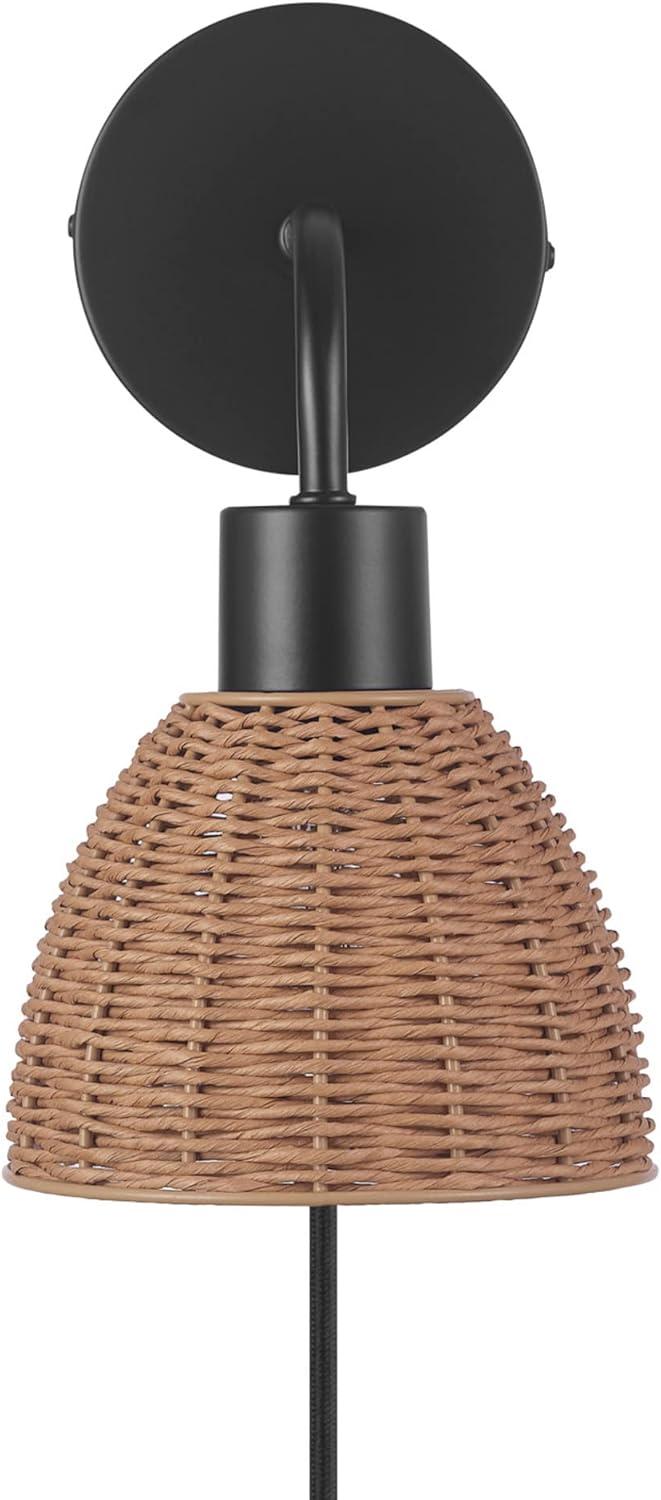 GLOBE Electric 65000052 Novogratz x 1-Light Wall Sconce, Matte Brass Finish, Rattan Shade, On/Off Pull Chain Switch, Wall Lighting, Kitchen Sconces, Wall Lights for Living Room, Home Décor(Briar (Black))