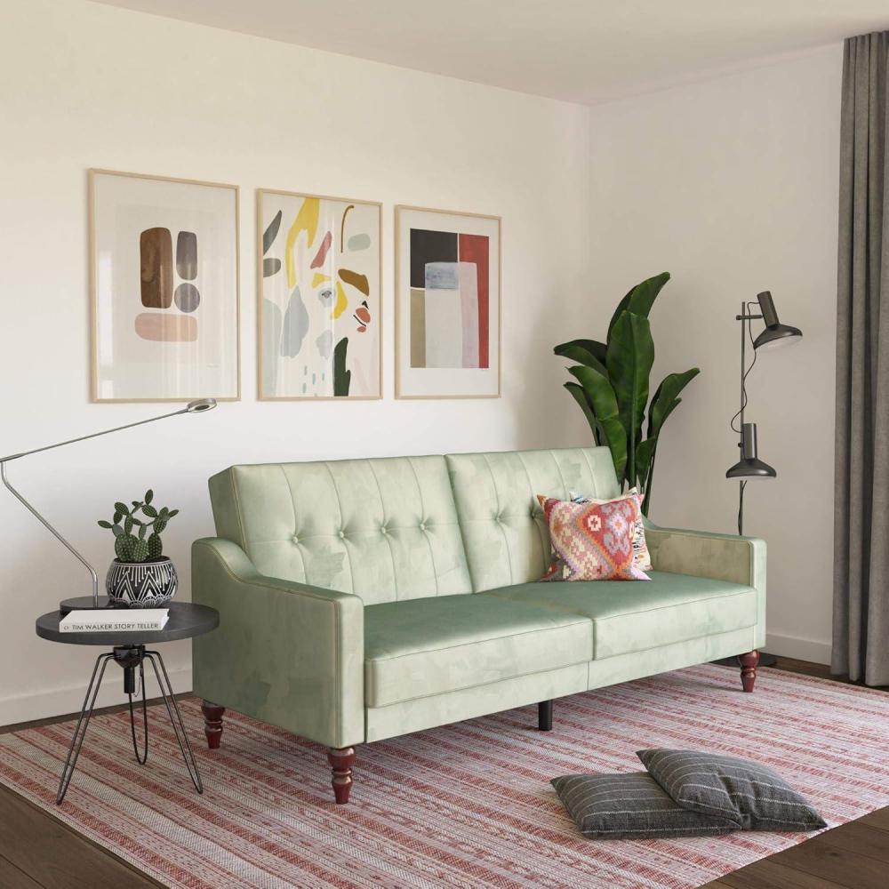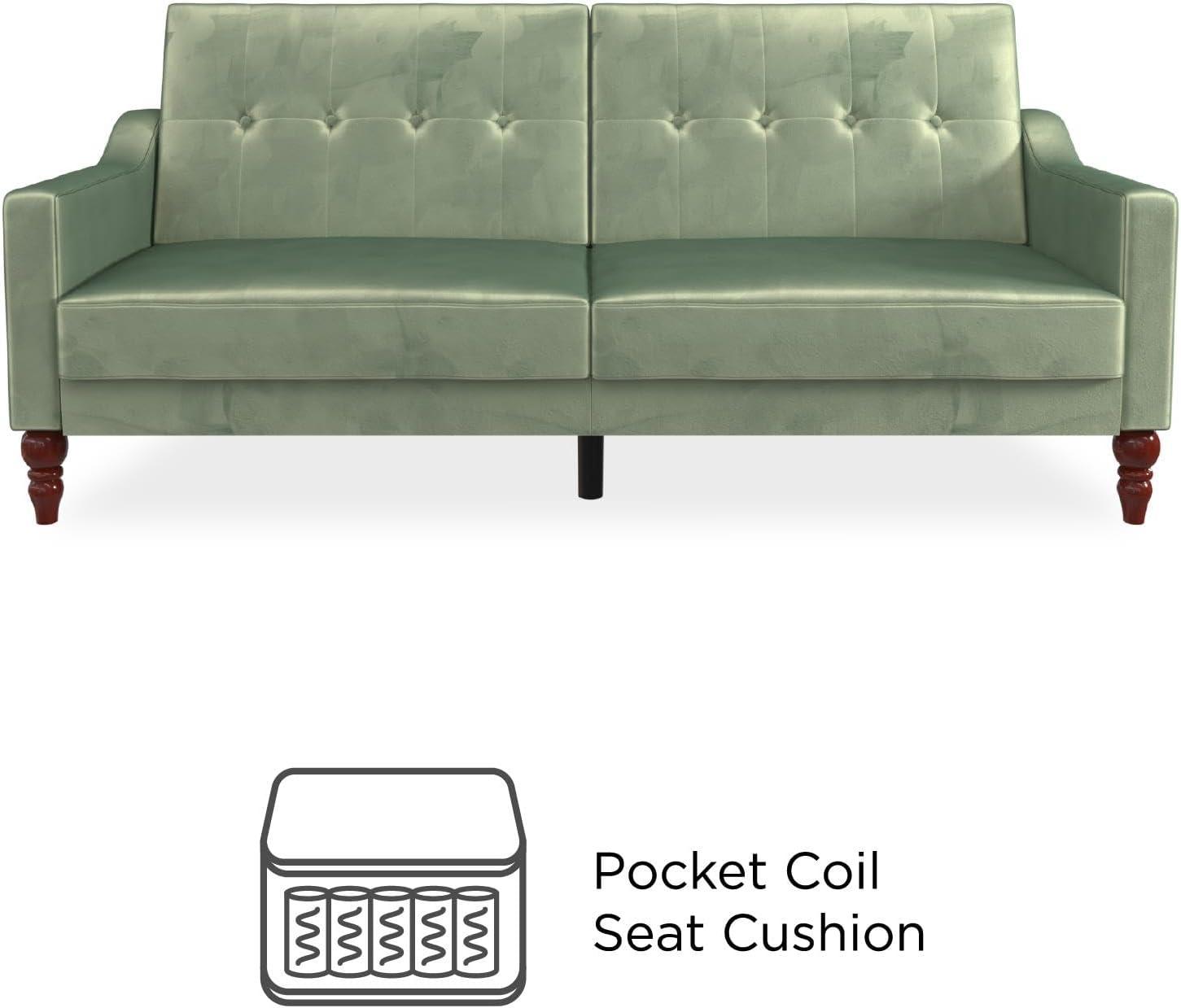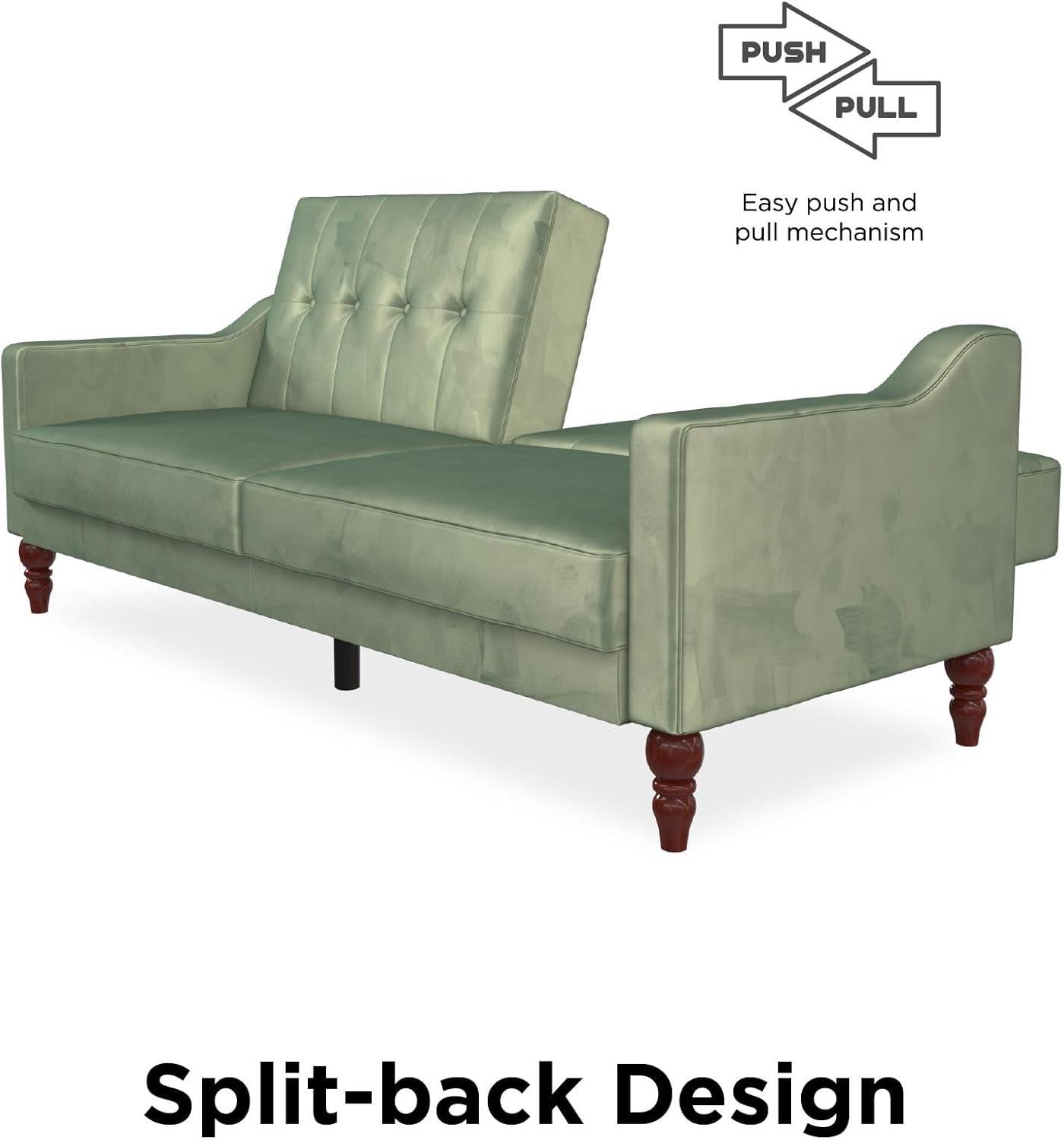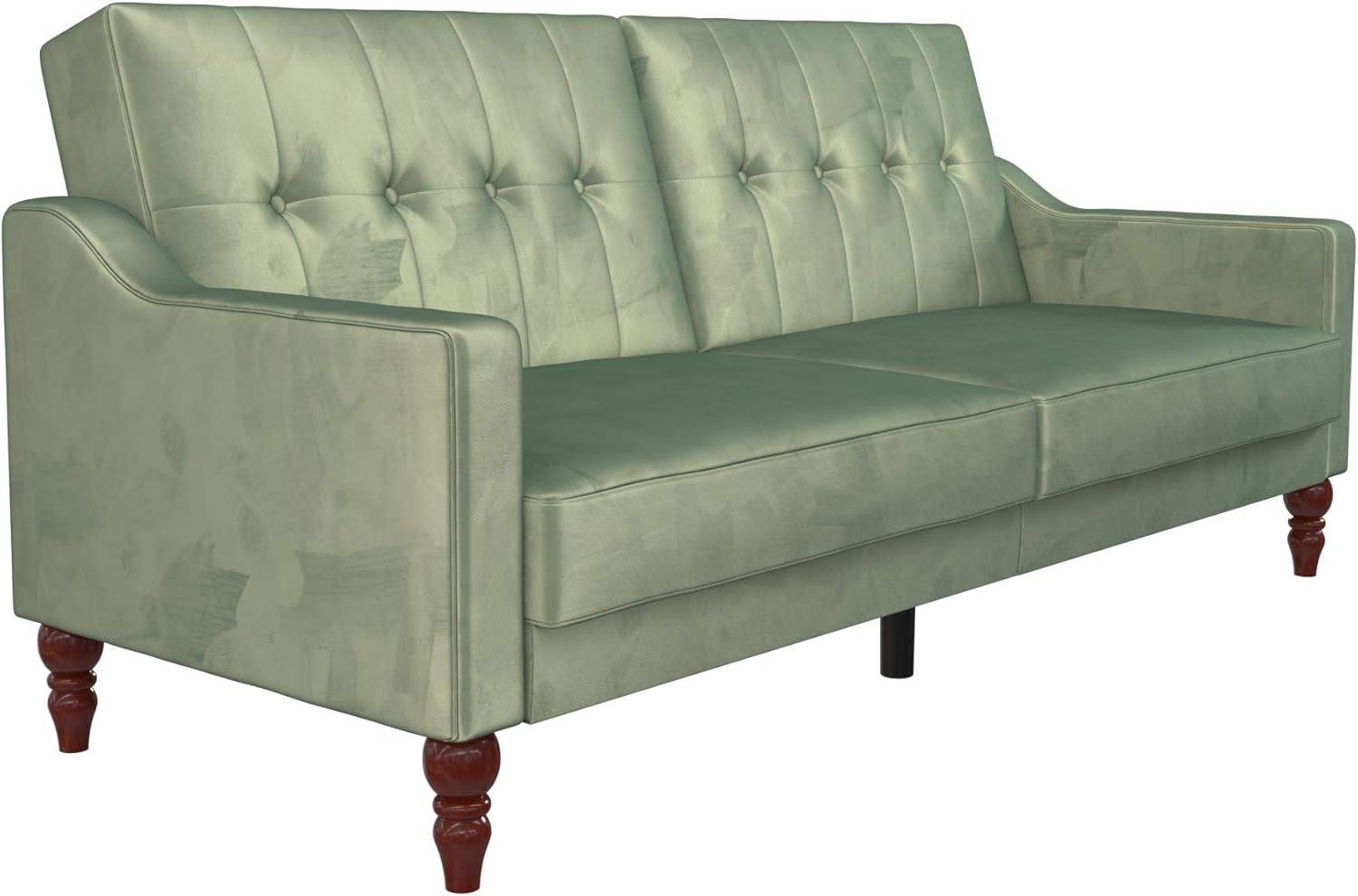 Novogratz 2277929N Brittany Sofa, Green Linen Sectional Futon
