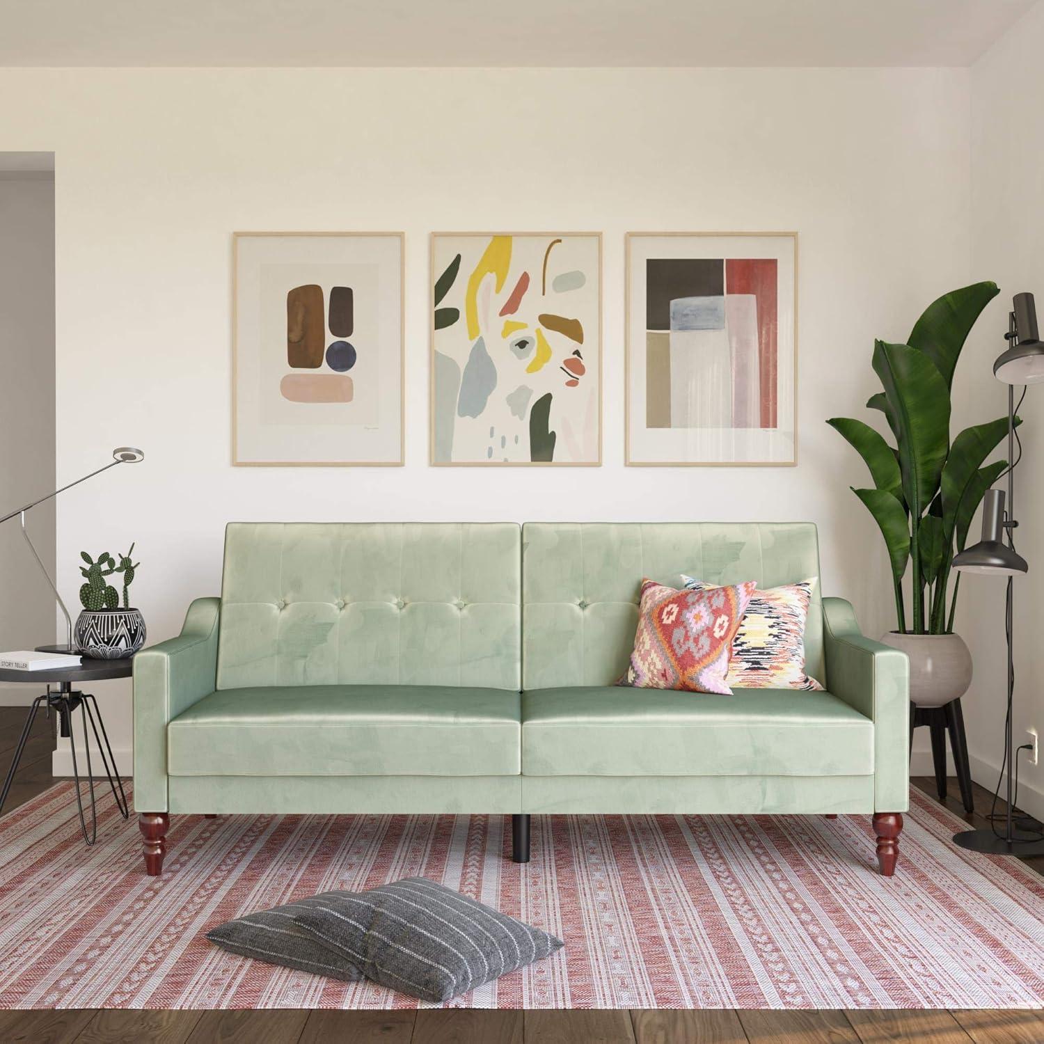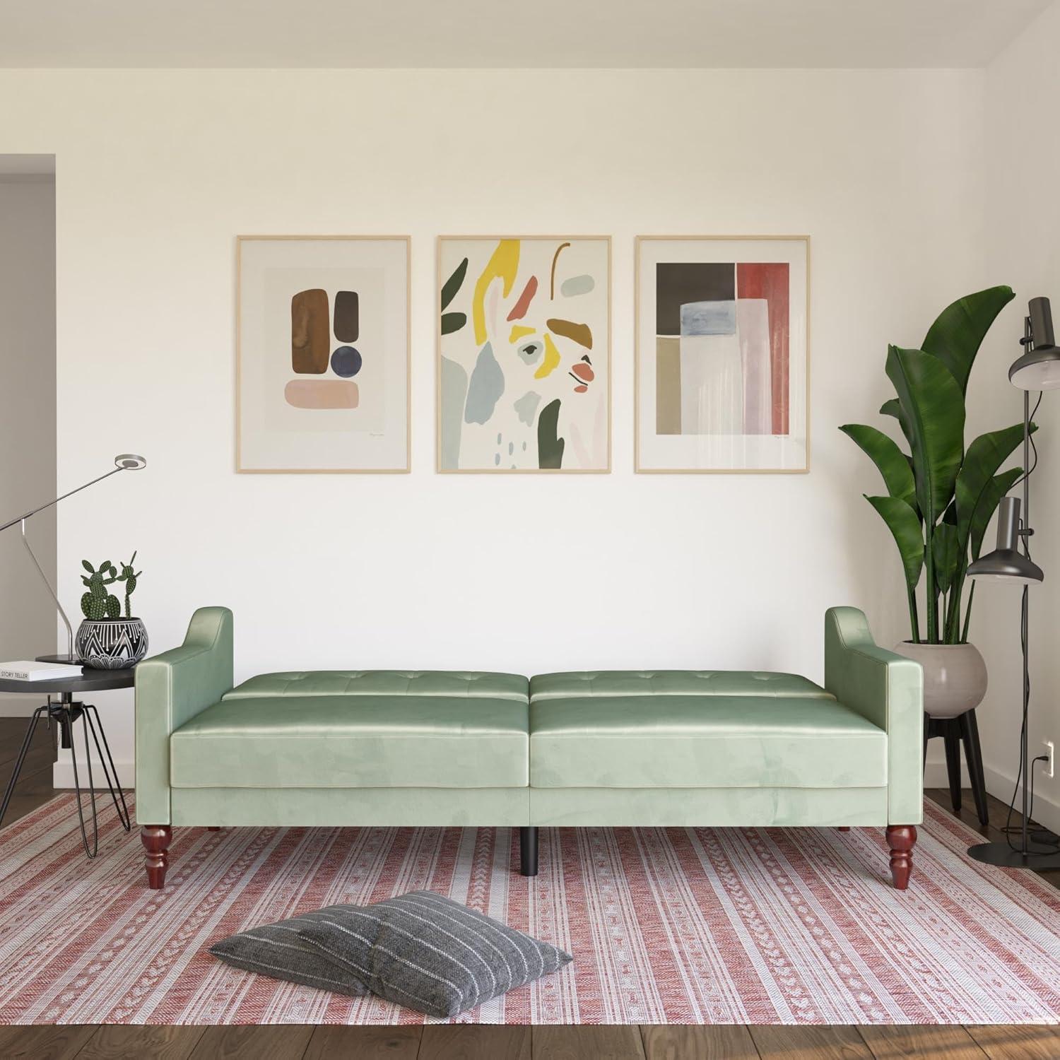 Be the first to review “Novogratz Beatrice 79 Inch Futon Sofa Bed in Velvet Fabric, Upholstered Couch Sleeper with Tufted Back, Baroque Legs, Teal”