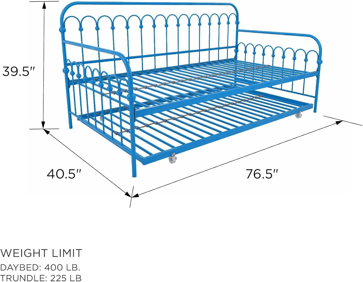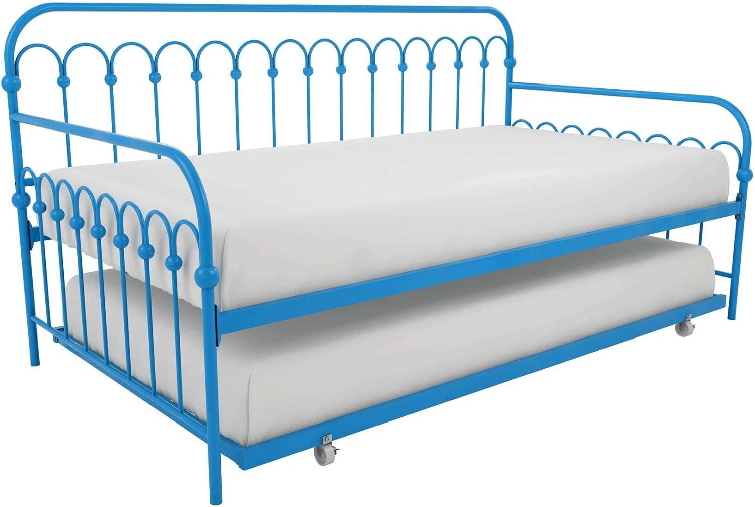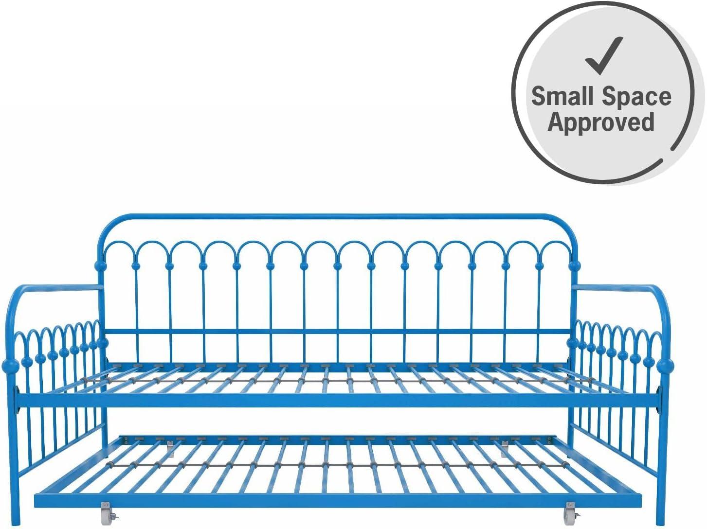 Modern and chic, in an impeccable design is the Novogratz Bright Pop Metal Daybed and Trundle. This daybed has been fabulously designed with stylish rounded details in a sturdy metal frame, which includes side rails and heavy-duty steel slats that ensure stability and durability. This multifunctional piece can fit a variety of rooms in your home from a bureau to your salon to a bedroom and it is ideal for extra seating, sleeping and hosting guests with its pull out trundle. The Novogratz Bright Pop Metal Daybed and Trundle is available in three colors: white, black and turquoise and it fits two Twin mattresses.