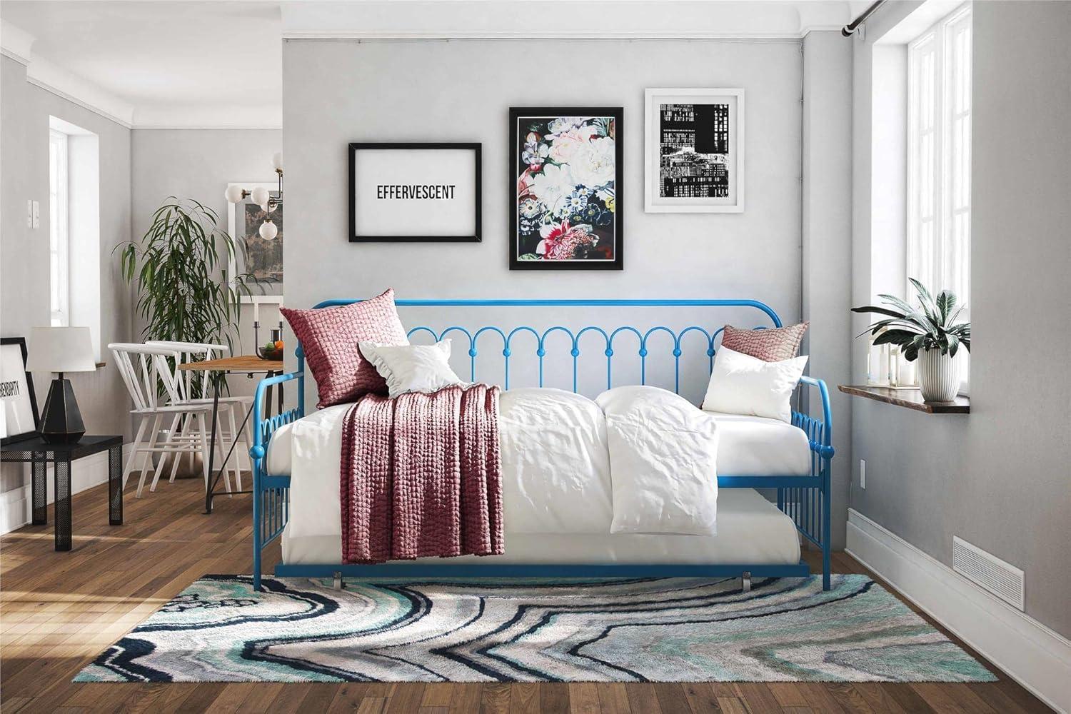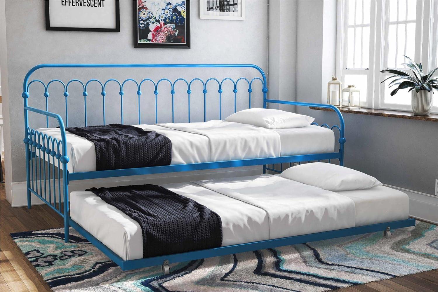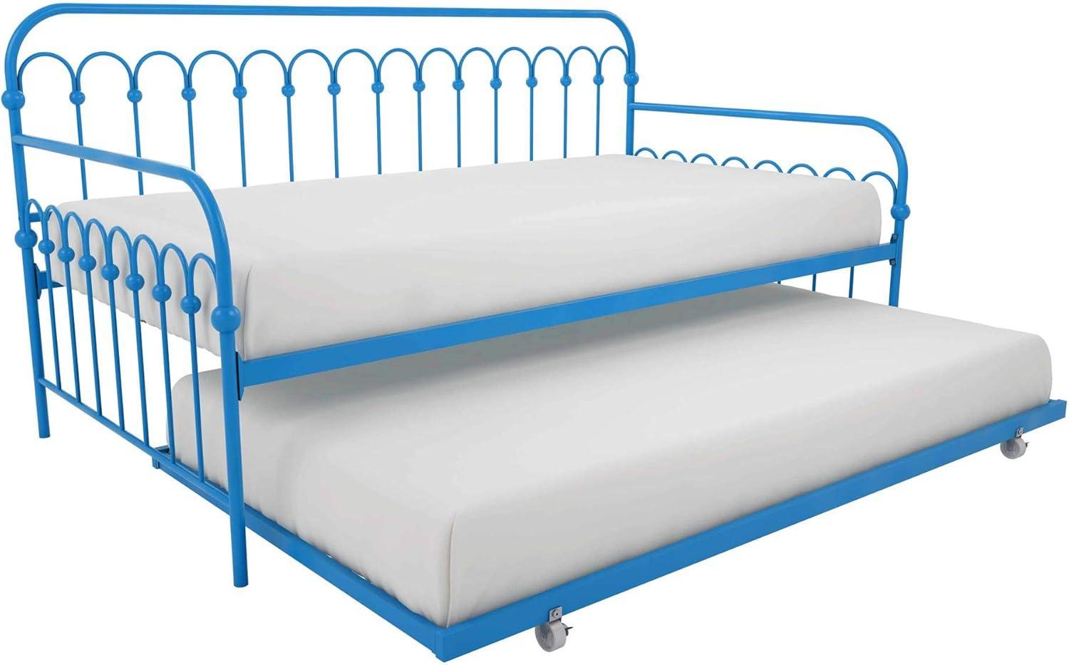 Modern and chic, in an impeccable design is the Novogratz Bright Pop Metal Daybed and Trundle. This daybed has been fabulously designed with stylish rounded details in a sturdy metal frame, which includes side rails and heavy-duty steel slats that ensure stability and durability. This multifunctional piece can fit a variety of rooms in your home from a bureau to your salon to a bedroom and it is ideal for extra seating, sleeping and hosting guests with its pull out trundle. The Novogratz Bright Pop Metal Daybed and Trundle is available in three colors: white, black and turquoise and it fits two Twin mattresses.
