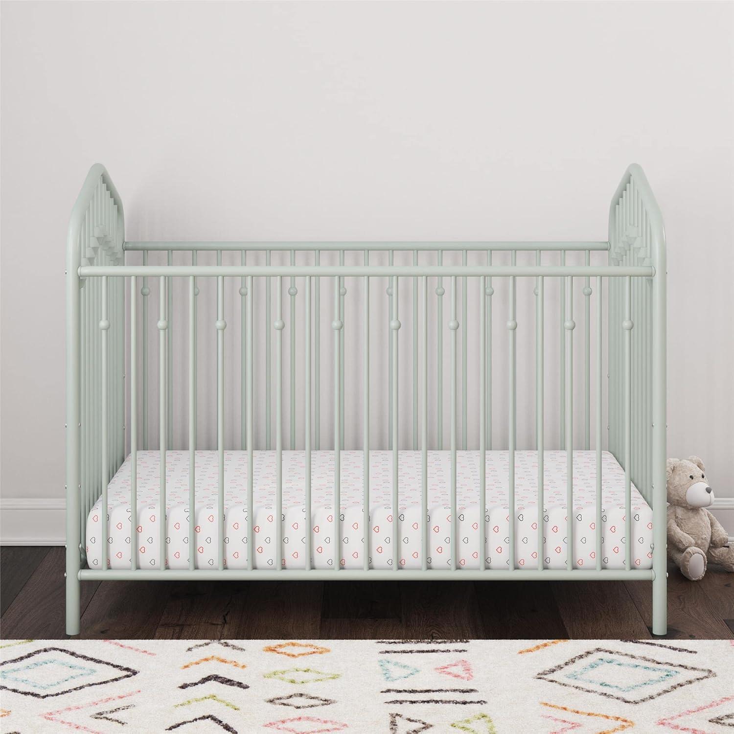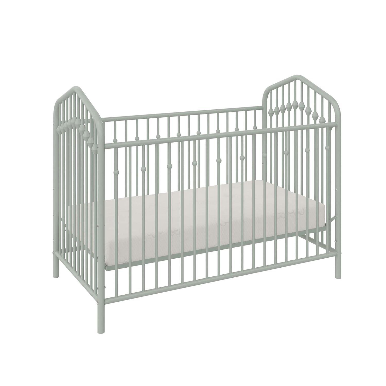 Novogratz Bushwick Metal Crib with Adjustable Mattress Height, Olive