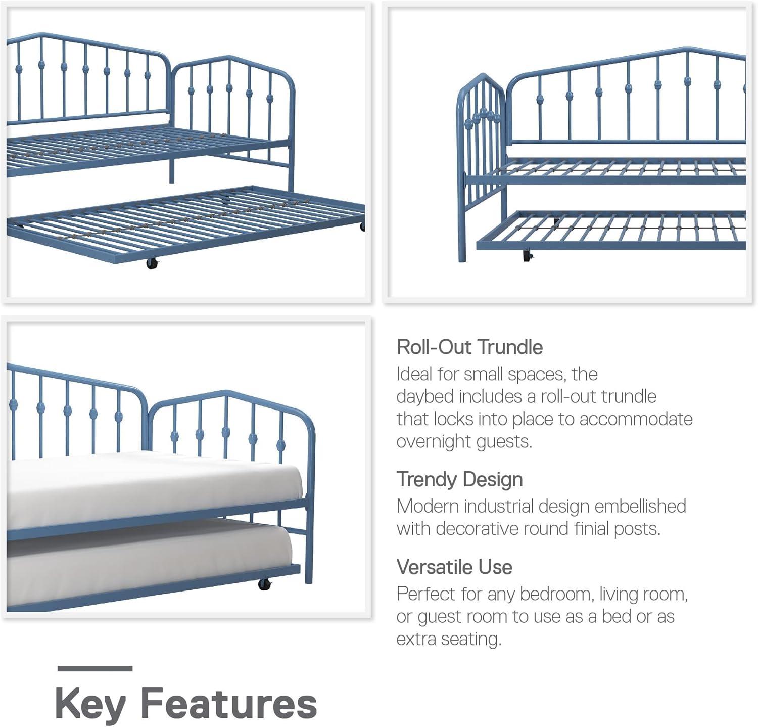 Novogratz Bushwick Metal Daybed & Trundle, Twin Size Frame, Sea Blue