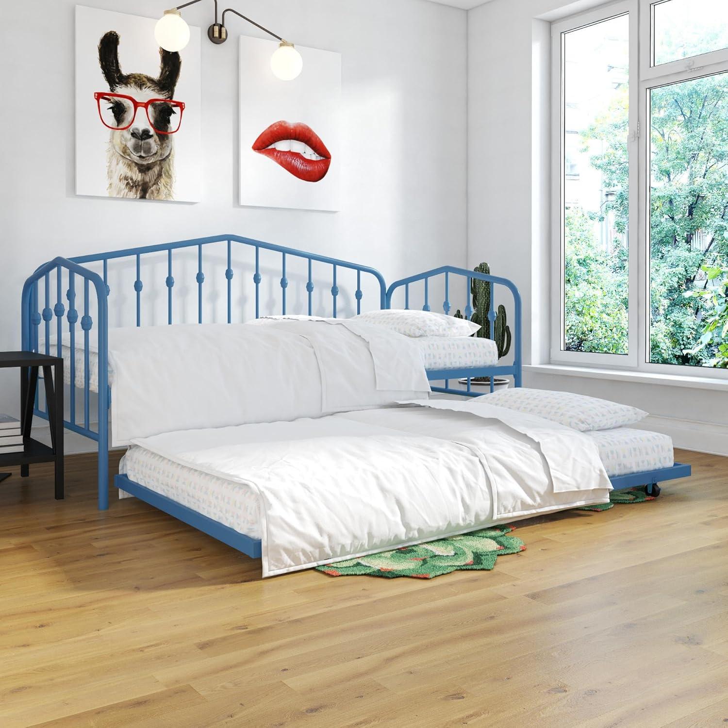 imageNovogratz Bushwick Metal Daybed ampamp Trundle Twin Size Frame Sea Blue