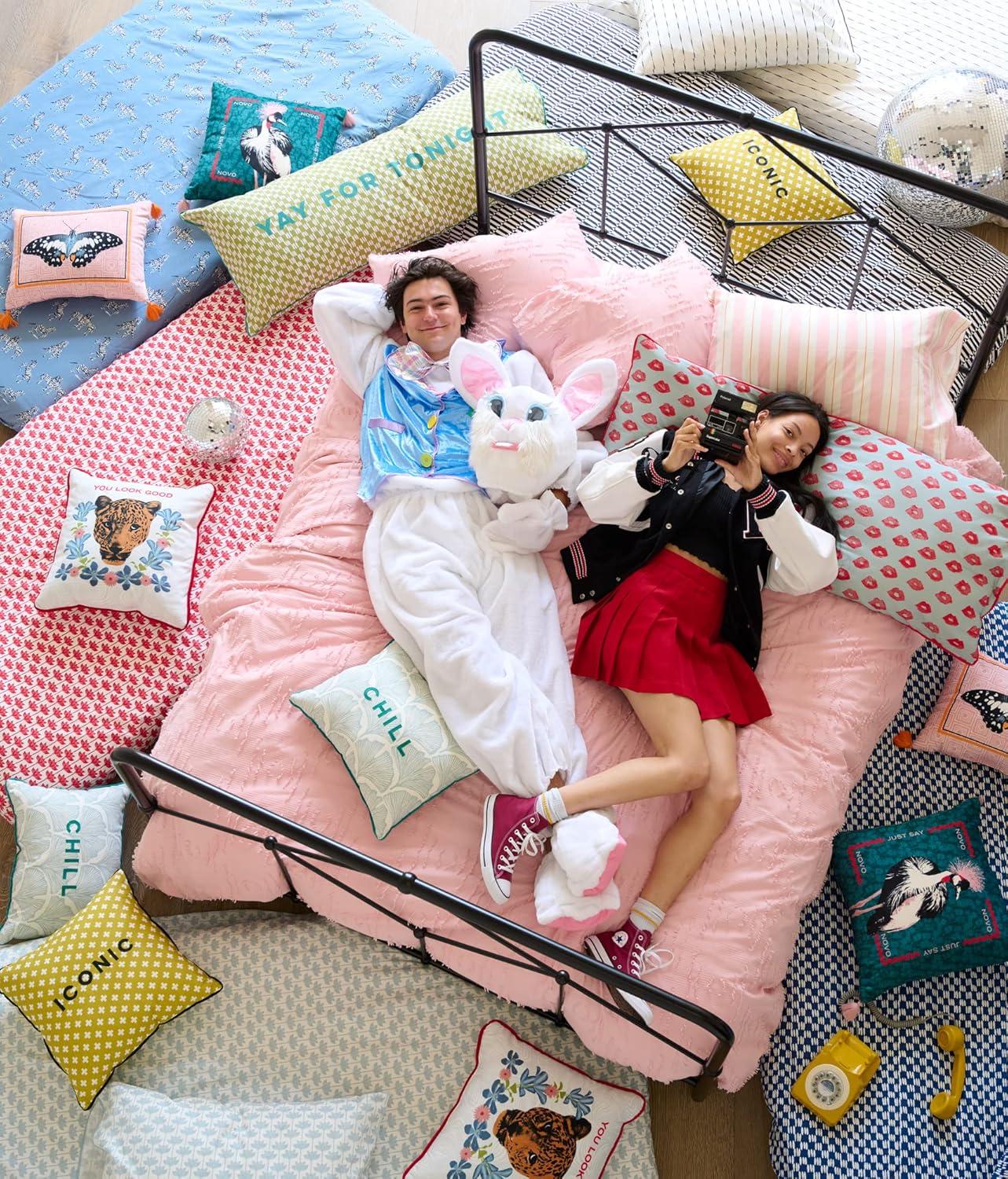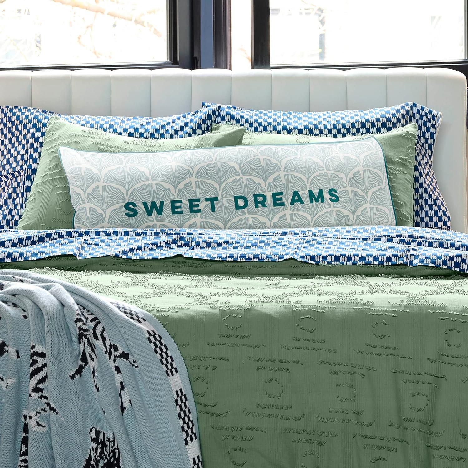 Look forward to nesting and resting with the Novogratz Sweet Dreams Printed Body Pillow. Curl up with this versatile, four-foot-long pillow, which features a printed sentiment on a painterly pattern, bringing a fun and fashionable accent to any room. It has a super-soft, 100% Cotton cover and contrast-color piped trims that add a tailored touch. Plus, its 100% Recycled Polyester fill maintains a lofty shape that lasts and reduces the burden on our oceans and landfills. The Novogratz by Utica Sweet Dreams Body Pillow is created using cotton produced under Better Cotton Initiative (BCI) standards, which ensure production of this cotton is better for the environment in which it grows. And because its shell fabric is STANDARD 100 by OEKO-TEX certified, it carries the MADE IN GREEN label, so you’ll sleep well knowing it’s free of harmful dyes and finishes. Simply put, this soft, sustainable body pillow is a dream for you and the planet. Cover fabric responsibly made of 100% Cotton Filled with 100% Recycled Polyester to reduce the burden on our oceans and landfills Coordinates perfectly with Novogratz printed sheet sets and comforters Dimensions: 20”W x 48”L
