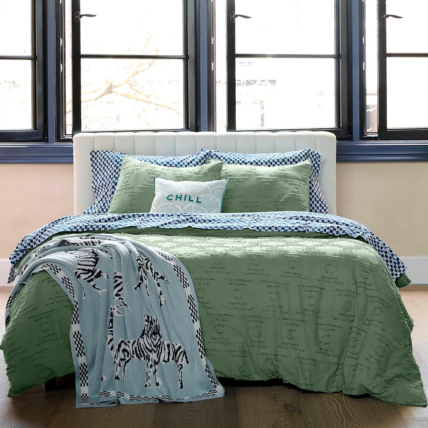 Waverly Tile Soft, Cozy, Decorative, Geometric, Chevron, Fringe, Lightweight & Breathable Throw for Sofa or Couch, Green, 50”W x 60”L