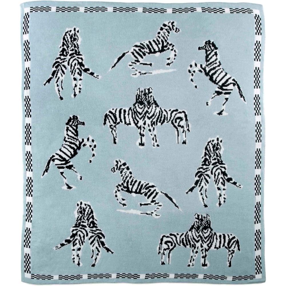 Express your affection for Zebras with this whimsical printed knit throw. The animals prance across this stylish layer, which features a refined jacquard texture. Its 100% Acrylic fabrication is super-soft to the touch, so get set for year-round comfort on the sofa, bed, or both. This throw comes in a cool blue hue, an easy-to-coordinate shade for a casual yet elevated look in any space. It’s also durable, meaning its good looks will last for many years to come. Made of 100% Acrylic for exceptional comfort Refined jacquard knit features prancing zebras Super-soft feel with vibrant geo print Coordinates perfectly with Novogratz printed comforters, sheets, and pillows Machine washable and dryer safe Dimensions: 50”W x 60”L